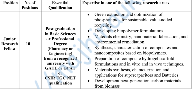 - Posts’ name – 1) Project Associate-II 2) Project Associate-I 3) Laboratory Assistant