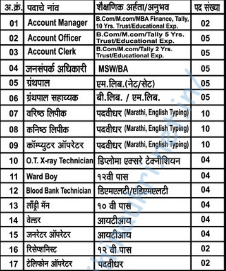 | शैक्षणिक पात्रता आणि अनुभव | शैक्षणिक पात्रताकरिता तक्ता पहा/जाहिरात बघावी. |