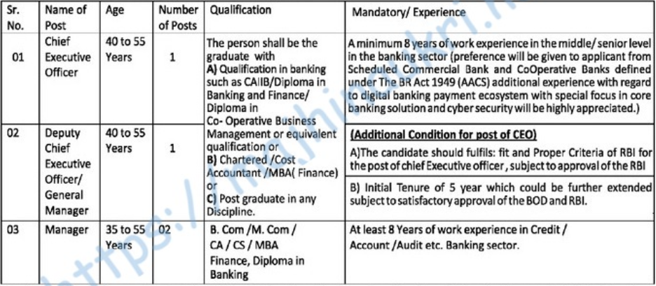 | या पदांसाठी भरती | १) मुख्य कार्यकारी अधिकारी २) उपमुख्य कार्यकारी अधिकारी/सरव्यवस्थापक ३) व्यवस्थापक |