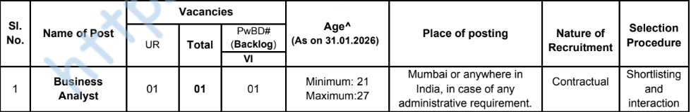 या पदांसाठी भरतीविशेषज्ञ श्रेणी अधिकारी – व्यवसाय विश्लेषक