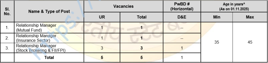 SBI Relationship Manager Recruitment 2025 – State Bank of India invites Online applications till last date 1/12/2025 for the Specialist Cadre Officer’s Relationship Manager in various disciplines posts in State Bank of India. There are total 5 posts. The job location is Mumbai. The Official website & PDF/Advertise is given below.