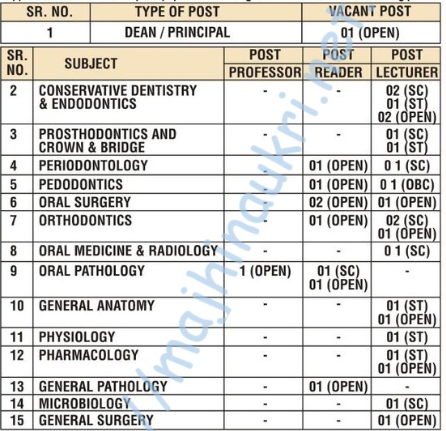 - मुलाखतीचे ठिकाण – स्वर्गीय दादासाहेब काळमेघ स्मृती डेन्टल कॉलेज अँड हॉस्पिटल, वानाडोंग्री-वडधामणा रोड, हिंगणा, जि. नागपूर – ४४१११०.