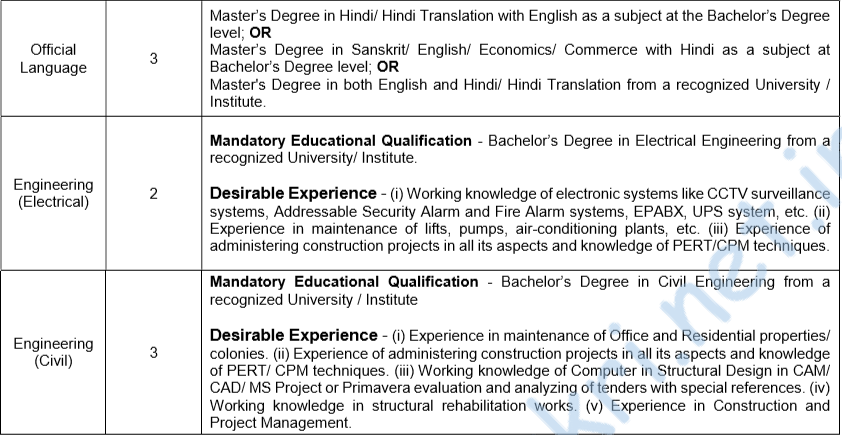- Educational qualification – See table/Ref. PDF/Visit website.