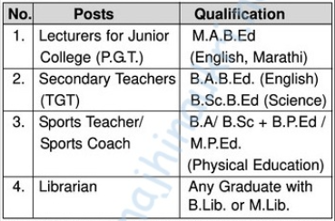 या पदांसाठी भरती शिक्षक – १) टी.जी.टी. २) पी.जी.टी. ३) प्राथमिक ४) संगणक शैक्षणिक पात्रता आणि अनुभव (शैक्षणिक पात्रताकरिता तक्ता पहा/जाहिरात बघावी) – एकूण पद संख्या जाहिरात पहा. नोकरीचे ठिकाण शिरपूर, जि. धुळे. अर्ज पद्धती ऑफलाईन. अर्जाची शेवटची तारीख दि. २०/०५/२०२४