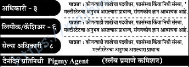 - Posts’ name – 1) Officer 2) Clerk/Cashier 3) Sales Officer 4) Pigmi Agent.