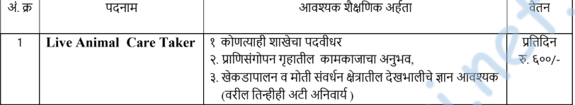 - २) प्रयोगशाळा आणि प्रक्षेत्र सहाय्यक – रु. १०,०००/- दरमहा