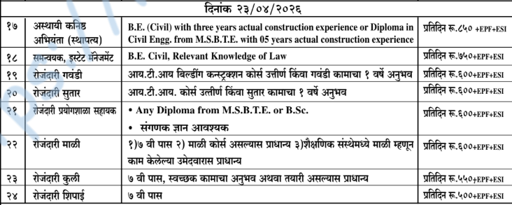 - वयोमर्यादा – ४५ वर्षे. (PDF/वेबसाईट बघावी)