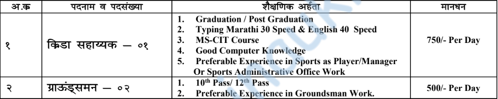 - वेतनमान – रु. १,०००/- प्रतिदिवशी. (तक्ता पहा/PDF/वेबसाईट बघावी)