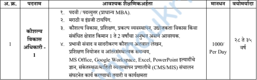 - वेतनमान – रु. १०००/- प्रतिदिवशी. (तक्ता पहा/PDF/वेबसाईट बघावी)