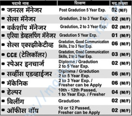 - मुलाखतीचे ठिकाण – सिद्धेश्वर टीव्हीएस, कॉटन मार्केटसमोर, पारोळा रोड, धुळे.