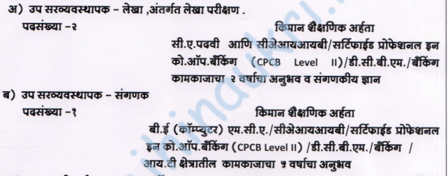 - For all the details of post, terms & conditions, application procedure, documents required along with application form, experience, selection procedure ref. PDF/Visit website – https://www.sindhudurgdcc.com/.