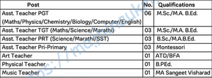 - E-Mail ID for application – sps.tadgaon@gmail.com.