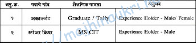 | शैक्षणिक पात्रता आणि अनुभव | शैक्षणिक पात्रतेकरिता तक्ता पहा/जाहिरात बघावी. |
