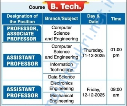 एसव्हीकेएम अभियांत्रिकी महाविदयालय, शिरपूर यांनी प्रसिद्ध केलेल्या जाहिराती नुसार येथे बी. टेक. अभ्यासक्रमासाठी विविध प्राध्यापक, सहयोगी प्राध्यापक आणि सहाय्यक प्राध्यापक पदभरतीसाठी ऑफलाईन अर्ज मागवून दि. ११/१२/२०२५ आणि दि. १२/१२/२०२५ रोजी मुलाखत आयोजित केली आहे. अधिकृत वेबसाईट आणि PDF जाहिरात लिंक खाली दिलेली आहे. “माझी नोकरी” या लिंक वरून टेलिग्राम चॅनल लगेच जॉईन करा.