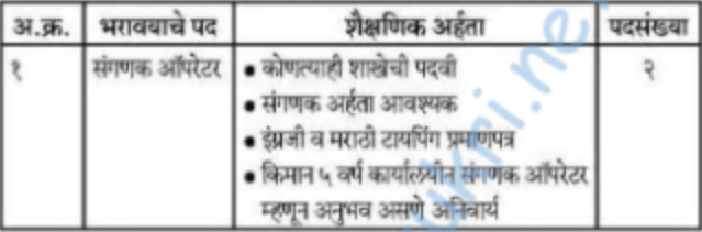 या पदांसाठी भरतीसंगणक ऑपरेटर