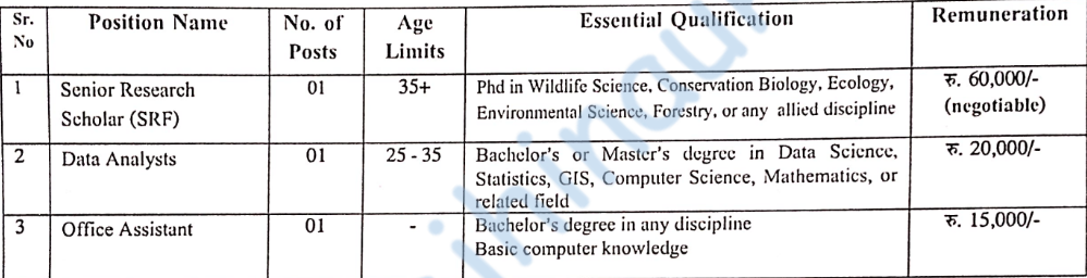 - Post’s Name – 1) Senior Research Fellow 2) Data Analyst 3) Office Assistant