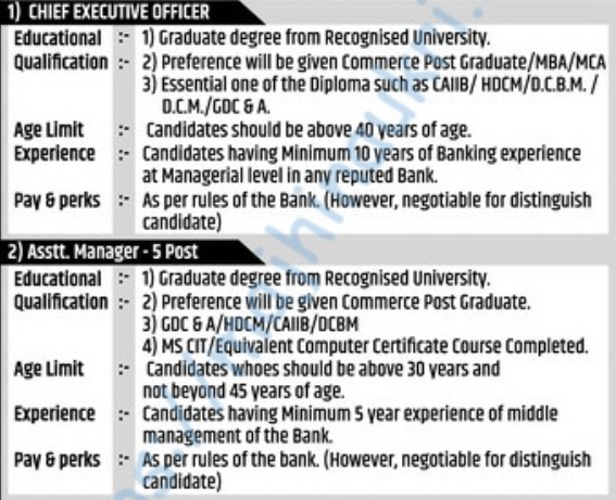 - १) शाखा व्यवस्थापक – ४० वर्षांपेक्षा कमी असावे.
