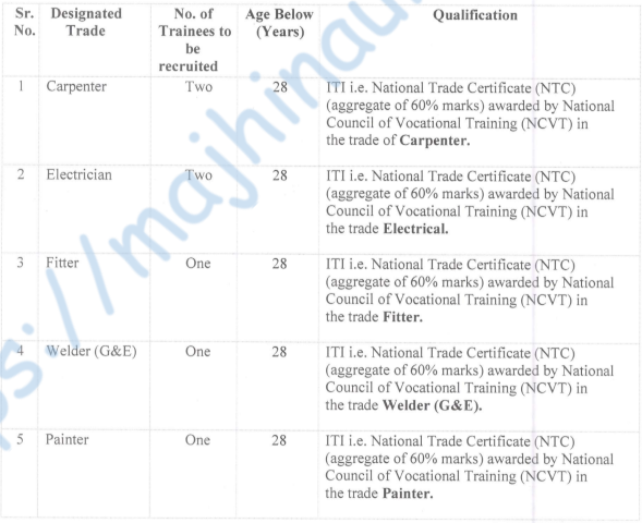 | या पदांसाठी भरती | ट्रेड्समन प्रशिक्षणार्थी –![]() |