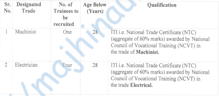 या पदांसाठी भरती | ट्रेड्समन प्रशिक्षणार्थी –![]() |