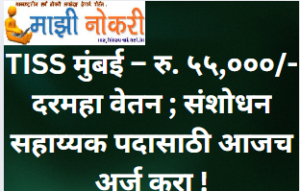 TISS मुंबई – रु. ५५,०००/- दरमहा वेतन ; संशोधन सहाय्यक पदासाठी आजच अर्ज करा !