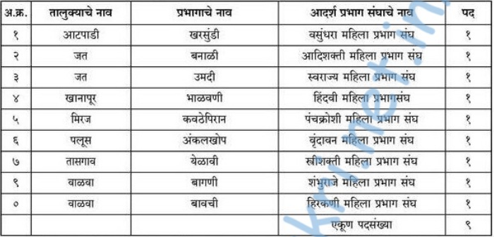 UMED MSRLM सांगली अंतर्गत ९ महिला प्रभागसंघ व्यवस्थापक पदभरती जाहीर