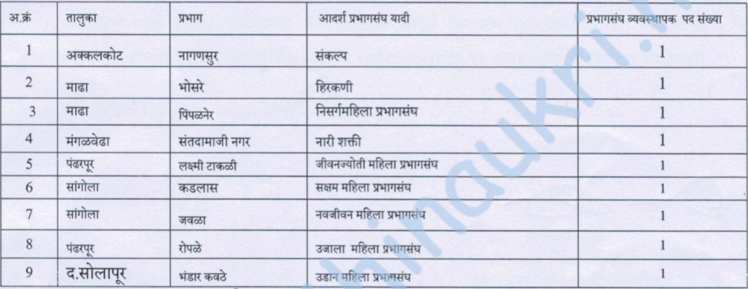 - Recruitment place – Solapur District. (Refer PDF/Visit website)
