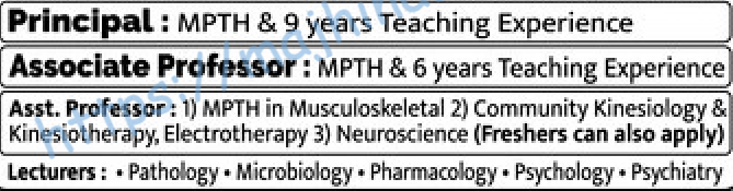 UPMC Nagpur Recruitment 2026 – Uday Physiotherapy Medical College, Wadi, Nagpur has arranged interview on date 14/02/2026 to fill up posts of Principal, Associate Professor & Assistant Professor in various disciplines. The job location is Nagpur. The Official website & PDF/Advertise is given below.