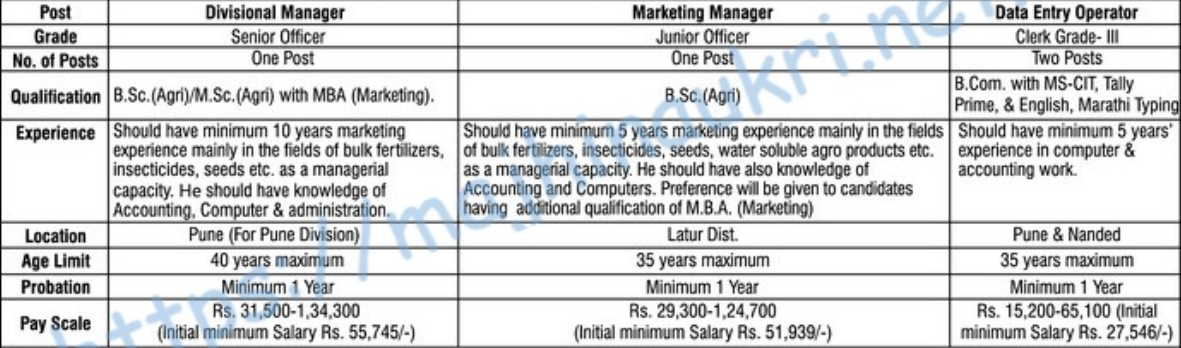 | या पदांसाठी भरती | १) विभागीय व्यवस्थापक २) विपणन व्यवस्थापक ३) डेटा एंट्री ऑपरेटर |