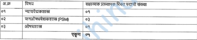 - मुलाखतीचे ठिकाण – अधिष्ठाता यांचे कार्यालय, विलासराव देशमुख शासकीय वैद्यकीय महाविद्यालय आणि अतिविशेषोपचार रुग्णालय, मारवाडी राजस्थान शाळेजवळ, गांधी चौक, लातूर – ४१३५१२.