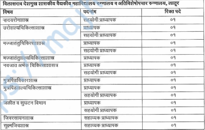 - Address for application – Receipt-Dispatch Section, Vilasrao Deshmukh Government Medical College, Near Marwadi Rajasthan School, Gandhi Square, Latur – 413512.