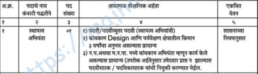 PMAY MC जव्हार, जि. पालघर – स्थापत्य अभियंता पदावर नोकरीची संधी