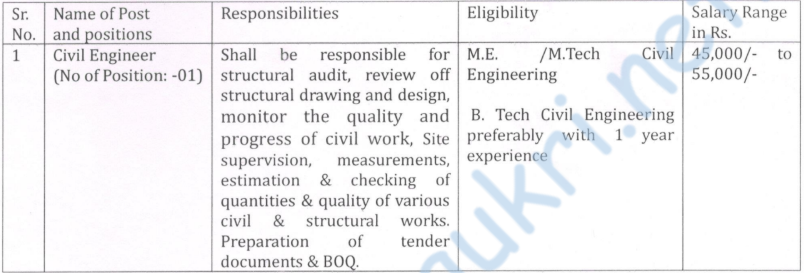 | या पदांसाठी भरती | स्थापत्य अभियंता |