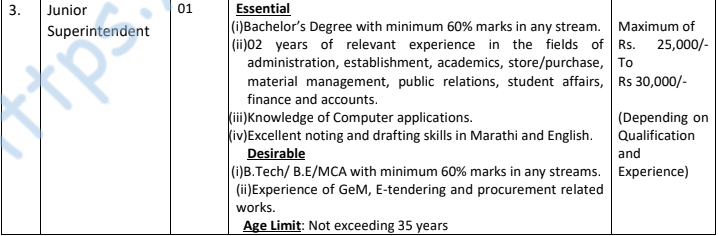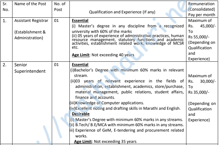या पदांसाठी भरती | १) सहाय्यक कुलसचिव (आस्थापन व प्रशासन) २) कनिष्ठ अधीक्षक ३) वरिष्ठ अधीक्षक |