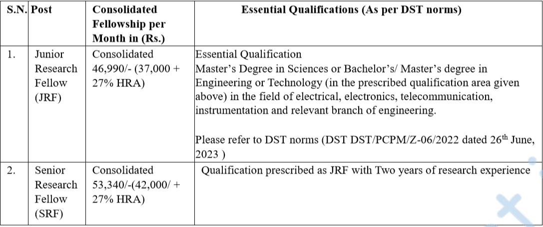 - Stipend – Rs. 25,000/- pm. (See table/Ref. PDF/Visit website)