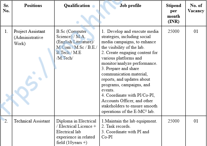 - मुलाखतीचे ठिकाण – प्रधान अन्वेषक, विद्युत अभियांत्रिकी विभाग अंतर्गत E-MC2 लॅब, वीरमाता जिजाबाई टेक्नॉलॉजिकल इन्स्टिट्यूट, मुंबई – ४०००१९.