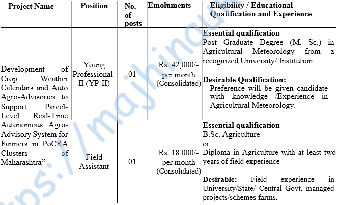 • Post’s Name – 1) Field Assistant 2) Young Professional-II.