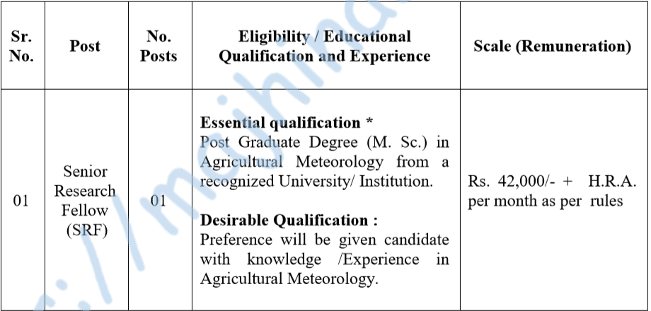 - Address for application – Department of Plant Pathology, Vasantrao Naik Marathwada Krishi Vidyapeeth, Parbhani.