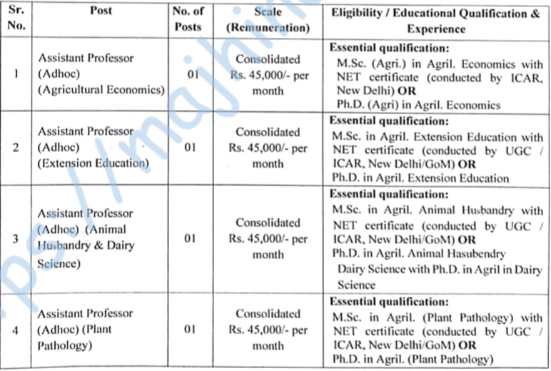 - For post, terms & conditions, subject, requisite qualification, experience, application procedure, prescribed format application form, other details ref. PDF/visit website – https://www.vnmkv.ac.in/.