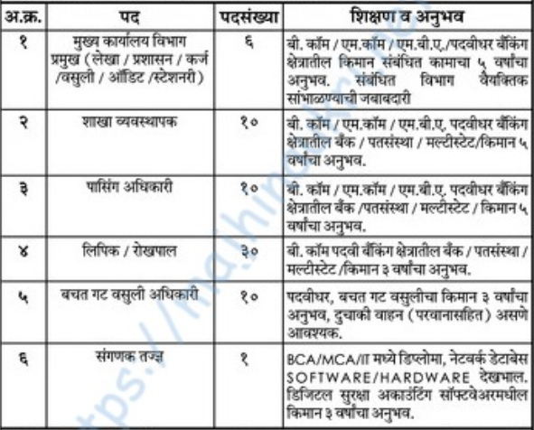 | या पदांसाठी भरती | १) मुख्य कार्यकारी अधिकारी २) सहाय्यक शाखा अधिकारी ३) कर्ज अधिकारी ४) विधी अधिकारी |