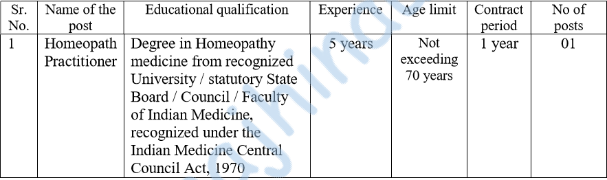 - No. of posts – 1 Post.