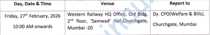 मुंबई विभाग, पश्चिम रेल्वे, मुंबई भरती २०२६ | |