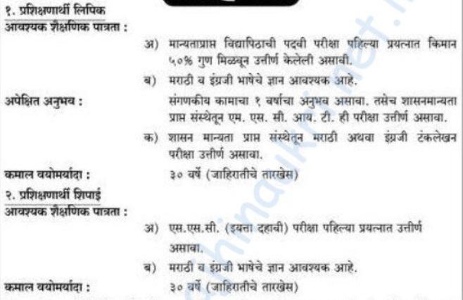 • वयोमर्यादा – ३० वर्षे. (जाहिरात बघावी)