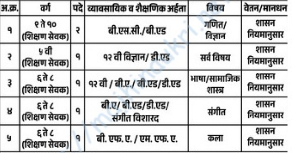 Yashwant High School Recruitment 2026 – Yashwant High School Gumgaon, Tal. Hingna, Dist. Nagpur invites Offline applications & has arranged interview on date 16/3/2026 to fill up posts of Shikshan Sevak in various disciplines. There are total 6 vacancies. The job location is Gumgaon, Tal. Hingna, Dist. Nagpur. The Official website & PDF/Advertise is given below.