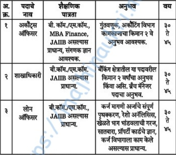 - वयोमर्यादा – ३० ते ४५ वर्षे. (तक्ता पहा/जाहिरात बघावी)
