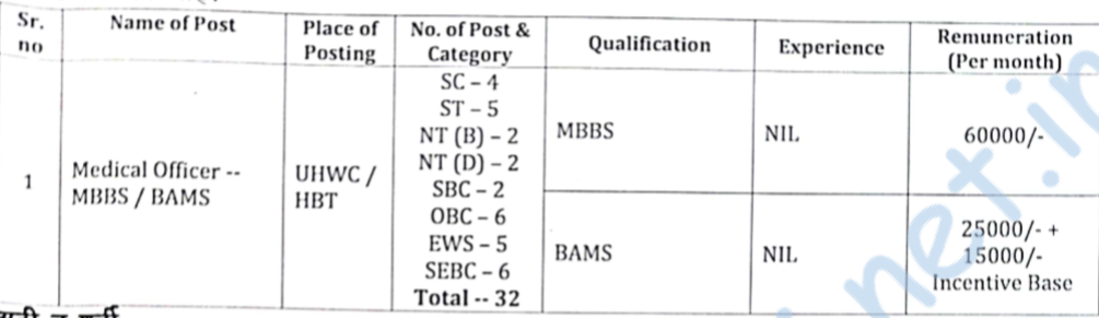 शैक्षणिक पात्रता आणि अनुभवएमबीबीएस/बीएएमएस. (तक्ता पहा/PDF/वेबसाईट पहा)