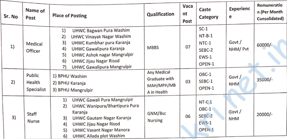 - Place of recruitment – Washim District