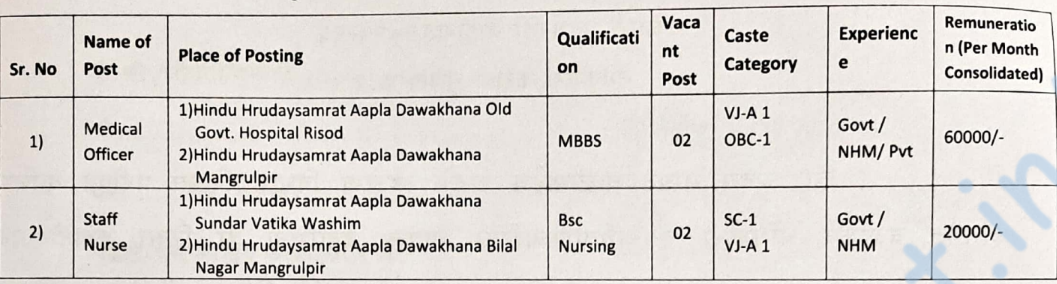 - Address for application – Office of National Health Mission, Health Department, District Council Washim.
